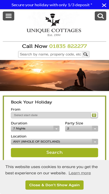 93%unique cottages offer holiday cottages and self-catering holiday homes in scotland. covering the south, central scotland, the highlands and west coast.