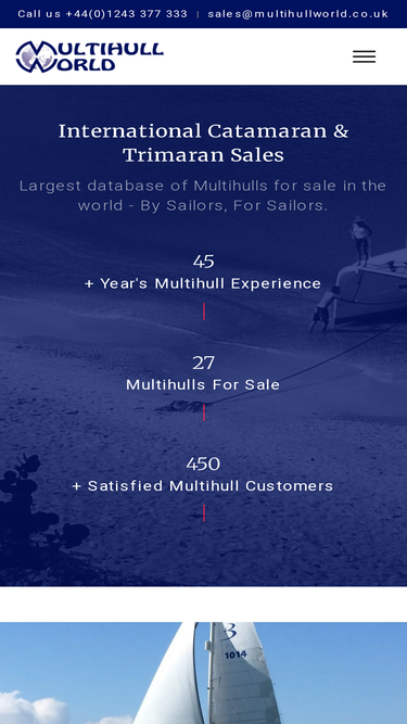 91%largest online database of used catamarans and trimarans for sale across the world, as well as being the sole uk agents for new boat sales for leading manufacturers. to buy or sell, call 01243 377 333