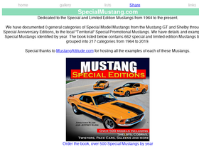 special and limited edition mustangs. 382 identified by year, from the mustang gt and shelby through the special anniversary editions, to the local territorial special promotional mustangs.