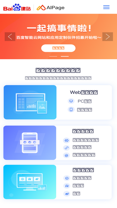 72%百度智能云官方推出,无需代码,快速搭建“pc网站、手机网站、百度智能小程序、微信小程序、支付宝小程序、微信公众号、百家号、微博号”八合一站点。