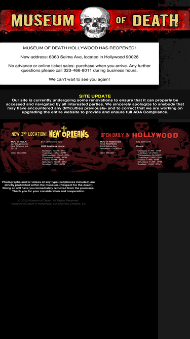 100%The World Famous Museum of Death Located in Hollyood, California Open 7 days a week The Museum of Death is a "Cashless Business"...