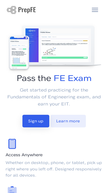 welcome to prepfe, the leading online service for fe exam prep. sign up and get started practicing for the fundamentals of engineering exam today. fe civil - fe