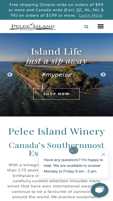 91%With 700+ acres of vineyards on Pelee Island, we're the largest private estate winery in Canada, located at the most southern tip of Ontario.
