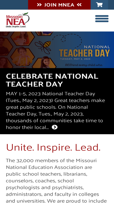 89%the missouri nea is an advocate for public schools, public school students, and public school employees. our members are employed in public school districts across the state of missouri, as well as state schools, community colleges, and university campuses. missouri nea also represents aspiring educators, who are students enrolled in higher education pursuing a degree in education, and mnea-retired, who are former school employees who have retired from a career in education. mea is an affiliate of the 3 million-member national education association.