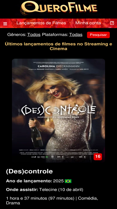 72%Lançamentos de filmes no Globoplay em março 2026! Confira as estreias de Enterre Seus Mortos e Minha Fera. Veja a lista completa de filmes atualizada aqui!