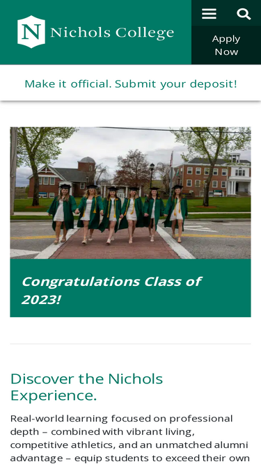 68%Nichols College is the college of choice for business if you’re looking for a family atmosphere with deep personal connections to students and faculty.