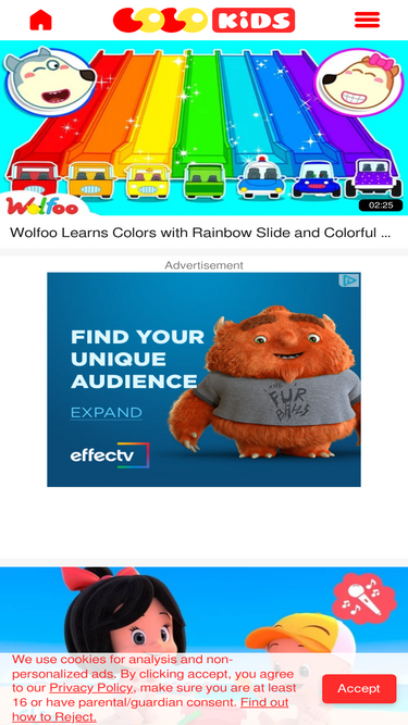 68%cocokids tv is the best place for kids to watch safe and fun videos for children, here we have cartoons for kids, nursery rhymes and kids songs, kid pretend play with toys, education videos for kids to learn colors, shapes and numbers, cartoon videos with cars, trucks and construction vehicles, kids shows and many other fun videos for children.