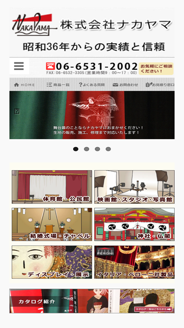 81%学校・幼稚園・体育館や文化ホール、野外ステージ、イベントなど商業用の舞台幕や冠婚葬祭の幕(紅白幕、鯨幕など)の製作、販売(取付)、修理までおこなっている株式会社ナカヤマです。弊社は演劇・芝居を行っている劇団関係者や、ユーチューバーの方々を応援します!イタリア・ペローニ社の総代理店です。