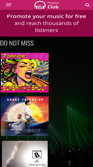 Découvrez les nouveautés dance, les exclus et la sélection des meilleurs tubes club et électro du moment sur PromoClub, le site promo 100% clubs. Retrouvez tous les liens shoppings pour compléter votre collection. Artistes et producteurs, proposez votre titre à la promo. Votez pour vos favoris et retrouvez le classement des titres préférés des internautes