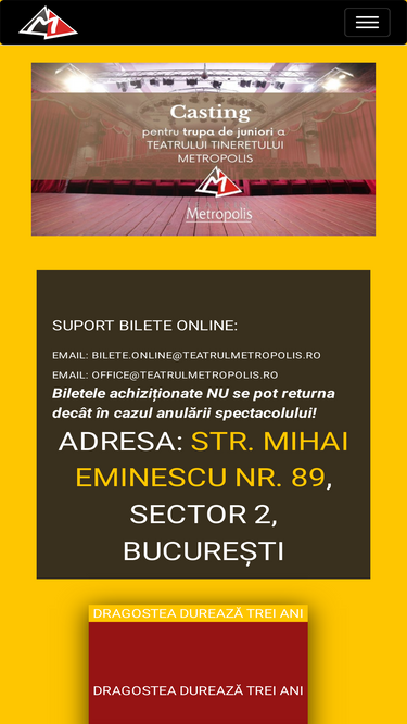 67%Programul reprezentațiilor următoare la Teatrul Metropolis.