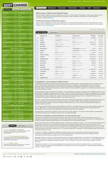 98%bestchange - мониторинг обменников, который предлагает актуальную информацию о курсах всех ведущих ручных и автоматических обменных пунктов электронных валют. если вы хотите без труда найти выгодные курсы, вам поможет наш мониторинг обменных пунктов