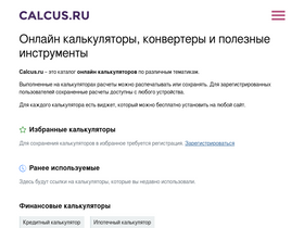 100%calcus.ru - онлайн калькуляторы и справочники различных тематик: кредиты, финансы, авто, бизнес, it, медицина, строительство. калькуляторы имеют функцию сохранения расчетов а так же для каждого калькулятора доступны виджеты для установки на сайты и в блог