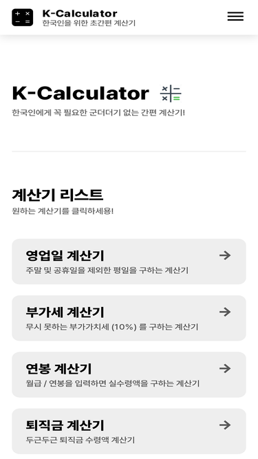 76%급여 실수령액 / 부가세 / 프리랜서 세금 / 영업일 / 전역일 등 한국인을 위한 초간편 계산기 모음