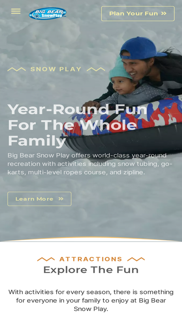 100%Big Bear Snow Play offers world-class year-round recreation with activities including snow tubing, go-karts, multi-level ropes course, and zipline.