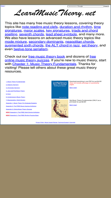 100%music theory lessons, worksheets, and books connecting theory to music for music-lovers.