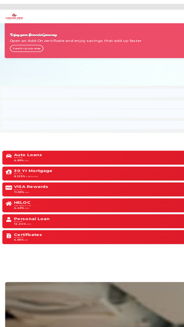 98%Discover Canyon View Credit Union, where you're more than a customer - you're a member. Serving all of Utah, including Eagle Mountain, Lehi, St. George, Salt Lake City, and Saratoga Springs. Join us for competitive loans, savings, and more!