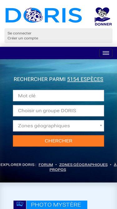 92%le site doris de la ffessm vise à recenser, illustrer et décrire le maximum d'espèces, communes ou rares, visibles en plongée dans nos eaux de métropole et d'outre-mer.