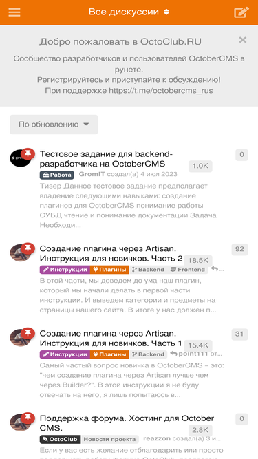 100%Уроки, инструкции и тех.помощь по October CMS. Сообщество разработчиков и пользователей October CMS в рунете.