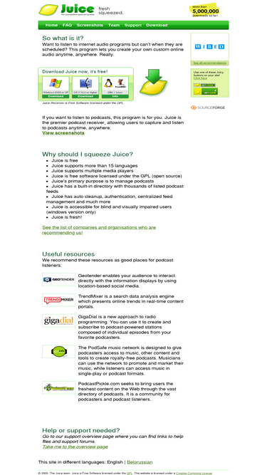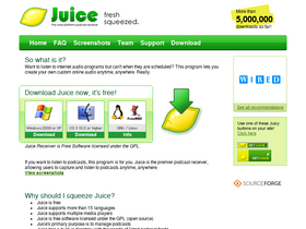 28%juice receiver (formerly ipodder) is a media aggregator which automatically downloads podcasts and media files to your computer or portable device, leaving you 'one-click-away' from latest media feeds. the whole process is done on it's own, so you don't have to select files, search for them or click links to download the media. all you do is specify some hotspots where to download from and wait to get yourself the content.