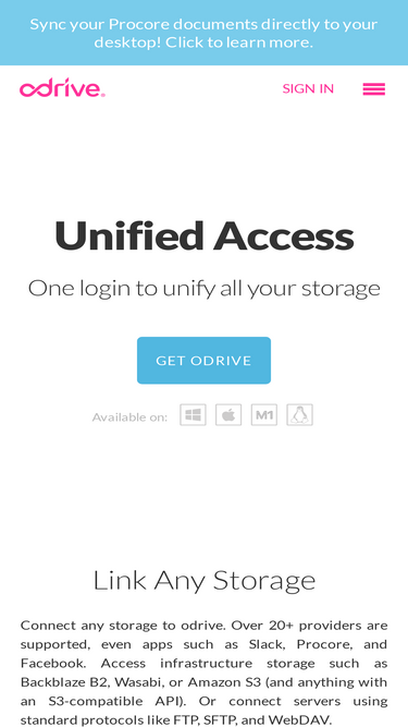 odrive is a new way to access all your cloud storage from one place. Sync unlimited storage securely and efficiently to a folder on your desktop.