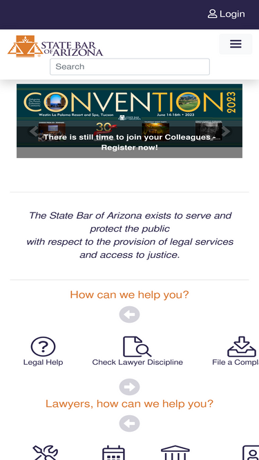 60%The State Bar of Arizona is a non-profit organization that operates under the supervision of the Arizona Supreme Court. The Bar regulates approximately 18,500 active attorneys and provides education and development programs for the legal profession and the public. The Bar's mission states that it exists to serve and protect the public with respect to the provision of legal services and access to justice. The organization was formed in 1933 and has a rich history of serving attorneys and the public. We have a wide variety of programs designed to help Arizonans, all of which are detailed throughout this website. As part of our goal to protect the public, the State Bar has a lawyer regulation department, which works to resolve problems between clients and attorneys. The Bar also offers legal information for consumers, periodic free legal advice days and other educational programs. The State Bar of Arizona is governed by a 29-member Board of Governors whose members are primarily legal professionals elected by Bar members. Among those board members are four non-lawyers who are appointed to represent the public. The Bar has two office locations - Phoenix and Tucson. It offers excellent employment opportunities for more than 100 people who perform a wide variety of services. The State Bar is not a state agency. The organization's activities are funded through membership fees, service fees and other self-generated revenue.
