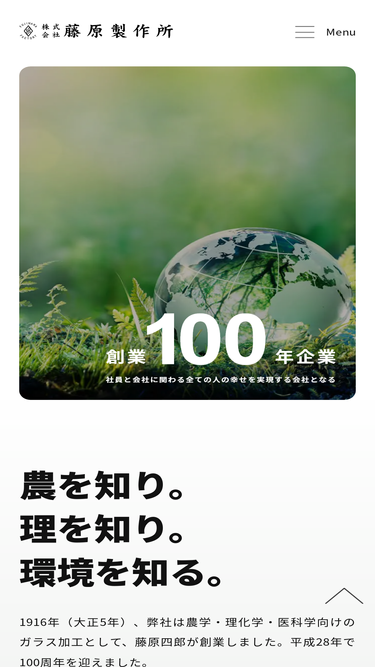 87%経営理念 Philosophy ものづくりと創造力で会社に貢献し、 社員・社員の家族・お客様・仕入れ先、 係わるすべての人のしあわせを実現します ~ものづくりで次の100年へ~ 長期ビジョン 藤原製作所は、全員参加型経営で「科学(化学)」、