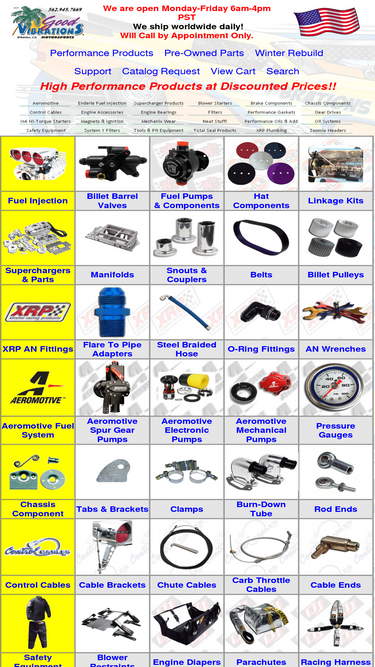 44%good vibrations motorsports stocks a large selection of drag racing parts. including aeromotive, clear view filtration, conrol cables, deist safety, dj safety, enderle fuel injection, fuel injection enterprise, fel-pro, hilborn, imi hi torque starters, jaz products, mallory ignition, milodon, msd ignition, sce gaskets, simpson safety equipment, smiley headers, strange, system 1 filters, taylor cable/vertex, the blower shop, total seal, waterman, wilwood engineering, xrp plumbing