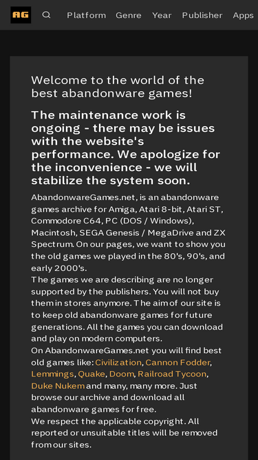 70%abandonware games to download for free. with us you will discover the world of old games for pc, amiga and classic macintosh. only the best old games can be found here!