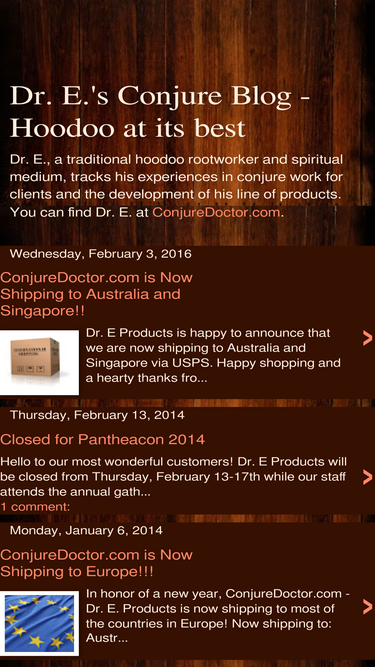 98%Dr. E., a traditional hoodoo rootworker and spiritual medium, tracks his experiences in conjure work for clients and the development of his line of products. You can find Dr. E. at ConjureDoctor.com.