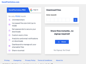77%Share files online easily without registration for free, no email, no phone. Just upload files and it 6 digit code and link to share files online.