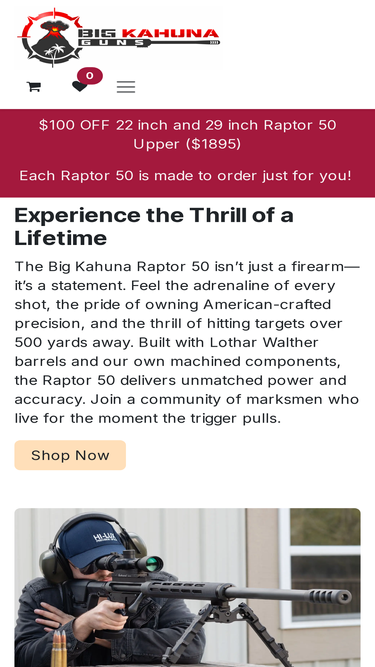 85%Raptor 50 Bundle: Includes 30" .50 BMG Upper, AR-15 Lower, Osprey TA5-30x56MDG Scope, Rings, Accutac HD-50 Bipod, Magpul PRS Gen 3 Stock. Requires two FFL transfers. Buyer must be 21+. No sales to restricted states.