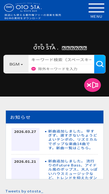 95%著作権フリー音楽素材「OTO STA(オトスタ)」のパスワード再設定のページです。番組やCM、ラジオなどの放送はもちろん、企業イベントや催事会場のプロモーション、YouTubeやWEB動画のBGMにご利用可能です。