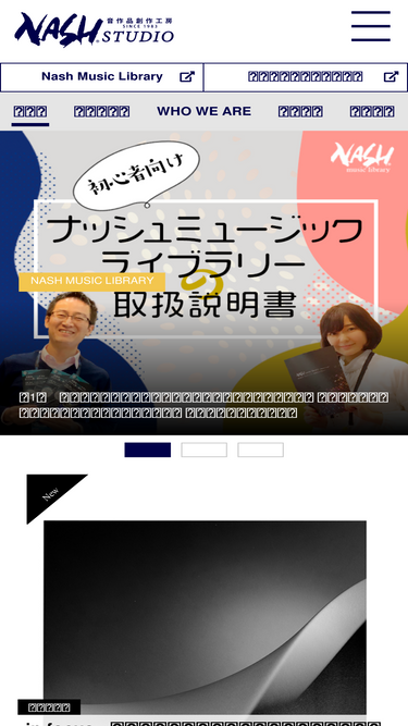 89%株式会社ナッシュスタジオのコーポレートサイト。1983年創業以来、テレビ/cm/イベント演出・創作表現を行う業務ユーザー向けに広範な領域の音楽・効果音を自社制作・供給している。