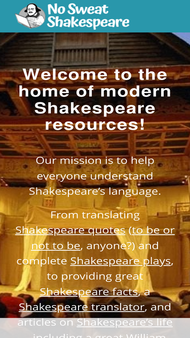 78%NoSweatShakespeare is the home of Shakespeare resources. Read Shakespeare's plays, quotes, poems & sonnets translated into modern English. Fantastic facts
