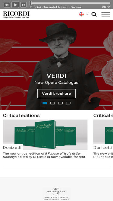 81%the italian publishing house casa ricordi counts among its large catalogue works by such legendary composers as verdi, puccini, rossini, nono and varèse.