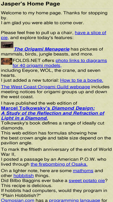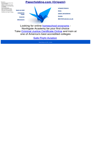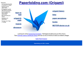100%A fun site to learn about origami, the art of paperfolding! Learn to fold, see the origami insects and dinosaurs, learn about origami history and origami and math, and much more!