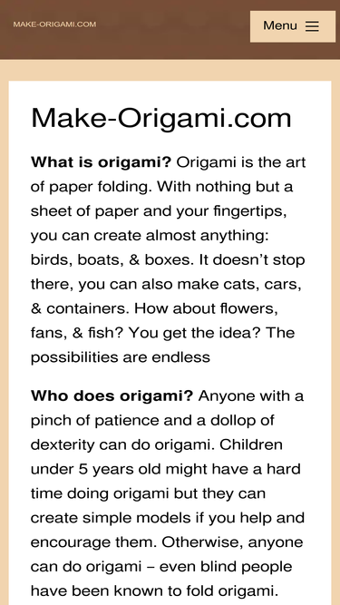 74%on happyfolding.com you can view instructional origami videos, pictures of folded origami models, and check translations of origami terms in different languages. it's a place to enjoy origami online. videos and imagery were created by sara adams, and the