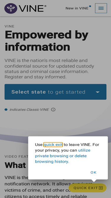 85%vine is the nation’s leading victim notification system, empowering survivors of crime with the updated custody status and criminal case information they need to remain safe and maintain peace of mind.