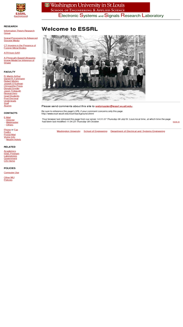 67%the electronic systems and signals research laboratory (essrl) is an academic research laboratory pursuing complementary educational and research activities in quantitative image processing, dynamic vision, and statistical image and signal processing with applications that range from medical imaging (including ct, ultrasonic, and optical) to commercial and military.