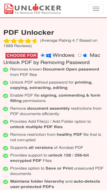 65%free adobe pdf unlocker tool is an offline software to unlock pdf files on windows os. it removes password and permissions from pdf files by unlocking them.