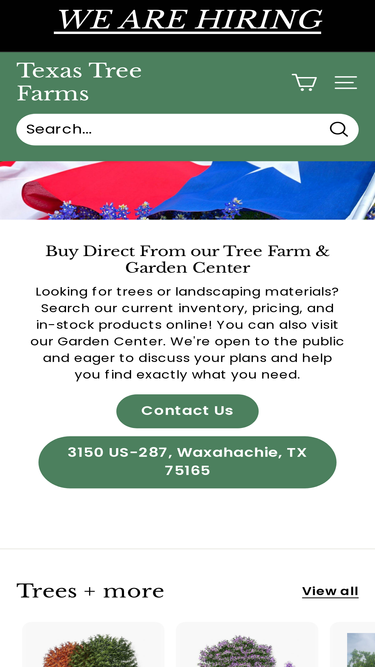 100%The Brazos Valley Tree Farm Nursery and Garden Center in College Station offers a wide variety of plants, flowers, shrubbery, roses, trees, fruit trees, and landscaping items such as garden benches, fountains, bird baths, mulch, and so much more! Check out our website to learn more! Open 6 days a