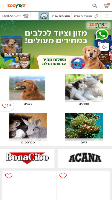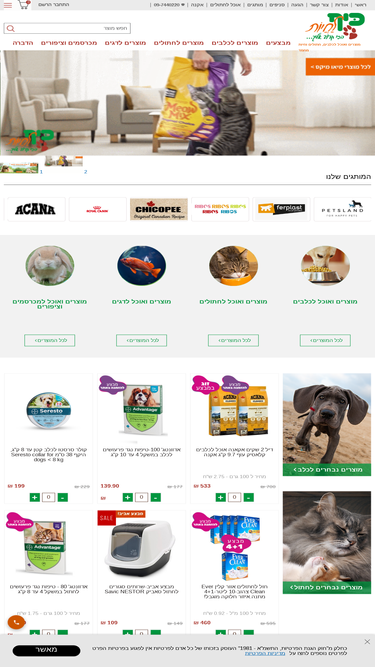 חנות חיות המתמחה במשלוחים חינם לתל אביב ירושלים ועוד אזורים של אוכל לכלבים ולחתולים ממותגים מובילים כמו אקאנה, טייסט אוף דה ווילד, פרו פלאן, מונג', נטורל דלישס, רויאל קינן, גו וכמובן גם ציוד ומזון לדגים מכרסמים תוכים וזוחלים.