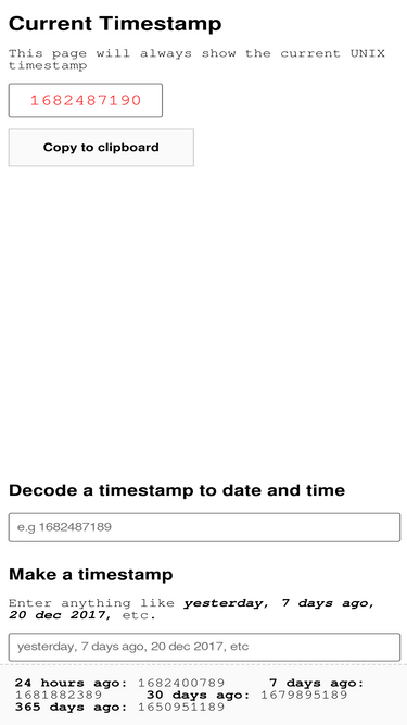 99%powerful unix timestamp generator with possibility of batch conversion for multiple dates, timestamps, calculation of differences, number of seconds in year or month and much more.