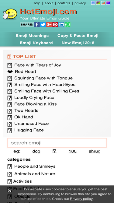 68%Copy and Paste Emoji to Facebook, Twitter, Instagram, Snapchat, Tumblr. All Emoji in one place! Supported on iOS, Android, OS X, Windows systems.