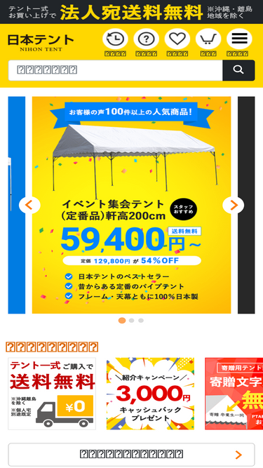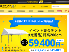 76%日本テントはイベントテント・集会テントの専門店です。テント一式のご購入で送料無料!名入れ文字入れ業界最安値挑戦中!まずはお気軽にお電話ください。 0120968663(通話無料)