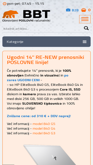 86%MATJAŽ DOBRAVC S.P. Tkalska ulica 1, 1230 Domžale, Slovenija Delovni čas: pon-pet: 08.00 - 16.00 TEHNIČNA POMOČ, SERVIS IN PRODAJA Telefon: 051201740 E-pošta: info@refurb.si (tehnična vprašanja, popravila, prodaja in svetovanje)