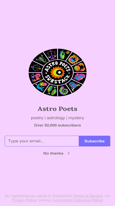 72%poetry | astrology | mystery. Click to read Astro Poets, a Substack publication with tens of thousands of subscribers.