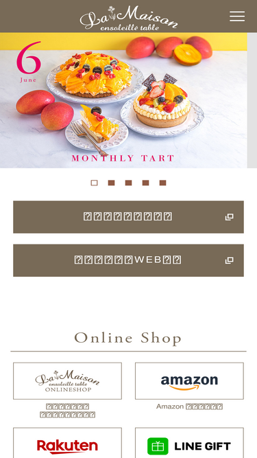100%ようこそ、ラ・メゾン・アンソレイユターブルへ。ラ・メゾンでは旬のフルーツにこだわった手作りタルトや季節ごとのかわいらしいギフトを多数取り揃えて皆様のご来店をお待ちしております。