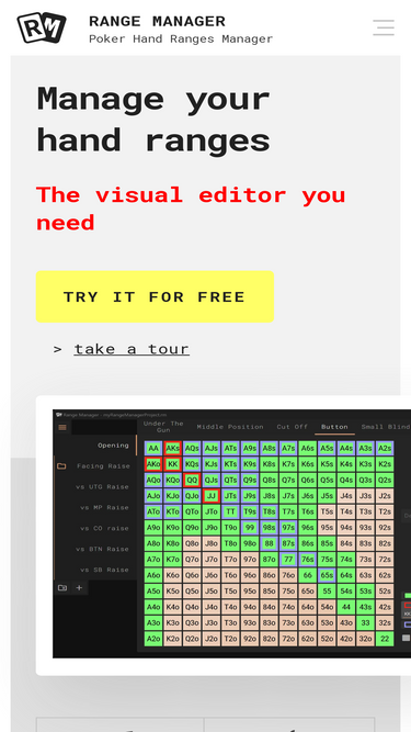 97%create and organize your poker hand ranges to improve your game with an intuitive graphical tool. customize, export, print and share poker range charts.