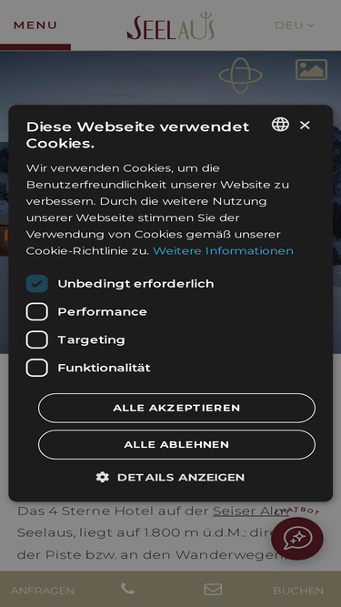 83%das hotel seelaus liegt nur 500 meter von der bergstation der seiser alm bahn - compatsch und direkt an der skipiste laurin bzw. den zahlreichen wanderwegen. wir freuen uns auf sie!
